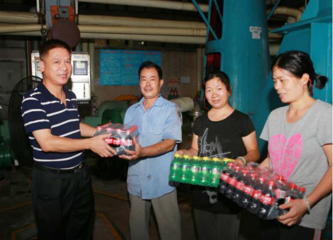 入夏以來(lái),公司高度重視防暑降溫工作開展,今年為每名員工發(fā)放一箱清涼飲料,每月準(zhǔn)時(shí)發(fā)放高溫補(bǔ)帖,且在高溫天氣達(dá)到35攝氏度時(shí)為員工免費(fèi)供應(yīng)糖水。