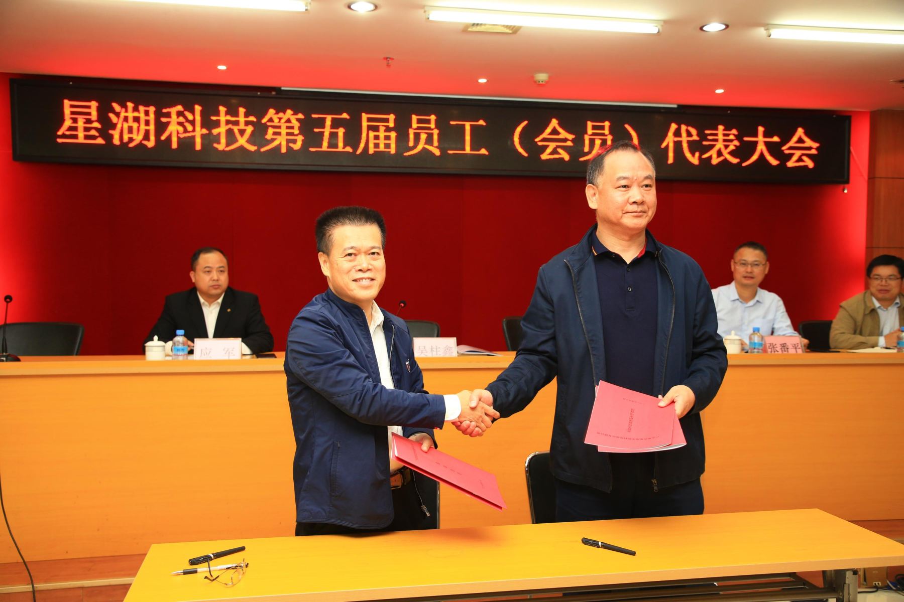 會(huì)議聽(tīng)取了工會(huì)主席吳柱鑫所作的《星湖科技第四屆員工代表大會(huì)以來(lái)的工作回顧》,人資黨群部部長(zhǎng)鐘敏所作的《關(guān)于第七輪集體合同執(zhí)行情況報(bào)告》;審議通過(guò)了《關(guān)于第五屆員工代表大會(huì)代表選舉情況報(bào)告》、《星湖科技第八輪集體合同》、《星湖科技女職工權(quán)益保護(hù)專(zhuān)項(xiàng)集體合同》;會(huì)議選舉了星湖科技第五屆工會(huì)委員會(huì)、經(jīng)審委員會(huì)和女工委員會(huì),并召開(kāi)了第五屆工會(huì)委員會(huì)第一次全體會(huì)議,選舉吳柱鑫為公司第五屆工會(huì)委員會(huì)主席,何灼芬為副主席。會(huì)上,行政方協(xié)商首席代表陳武總經(jīng)理與工會(huì)方協(xié)商首席代表吳柱鑫主席簽訂了《星湖科技第八輪集體合同》、《星湖科技女職工權(quán)益保護(hù)專(zhuān)項(xiàng)集體合同》。