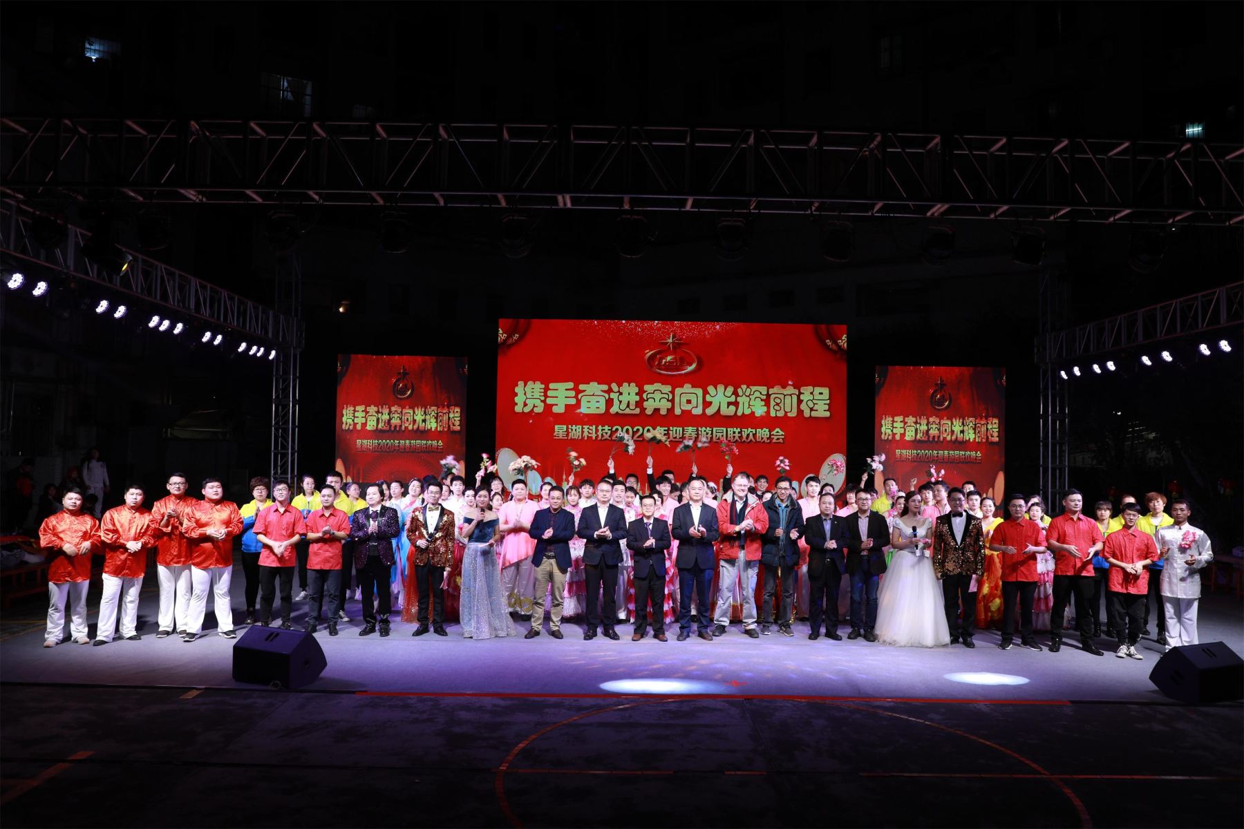 1月13日晚,公司在生化制藥廠廠區(qū)舉辦了主題為“攜手奮進(jìn)奔向光輝前程”的2020年迎春游園聯(lián)歡晚會(huì)?!靶呛萍既恕毕矚庋笱蟮赜瓉?lái)了自己的春晚。公司黨委書(shū)記、董事長(zhǎng)兼總經(jīng)理陳武,黨委副書(shū)記、工會(huì)主席吳柱鑫,副總經(jīng)理張番平、李建軍、應(yīng)軍等在家的公司領(lǐng)導(dǎo)和各廠各部門的管理人員與一千多員工及家屬歡聚一堂,共迎新春。晚會(huì)自始至終熱鬧喜慶、歡樂(lè)洋溢。