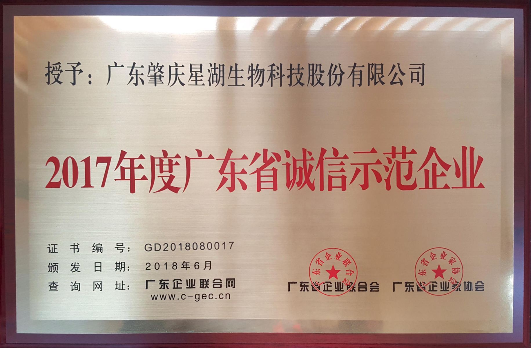 公司榮獲2017年度“廣東省誠(chéng)信示范企業(yè)” 日前,公司在廣東省企業(yè)聯(lián)合會(huì)、廣東省企業(yè)家協(xié)會(huì)主辦的廣東省弘揚(yáng)優(yōu)秀企業(yè)家精神暨誠(chéng)信建設(shè)大會(huì)上受到表彰,榮獲2017年度廣東省誠(chéng)信示范企業(yè)。